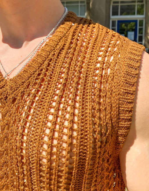 Asos Design Sleeveless Sweater Vest In Crochet Knit In Tan Asos